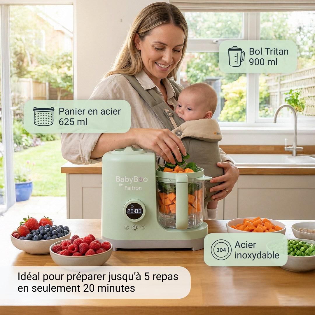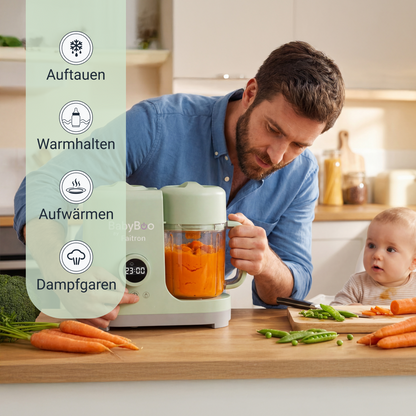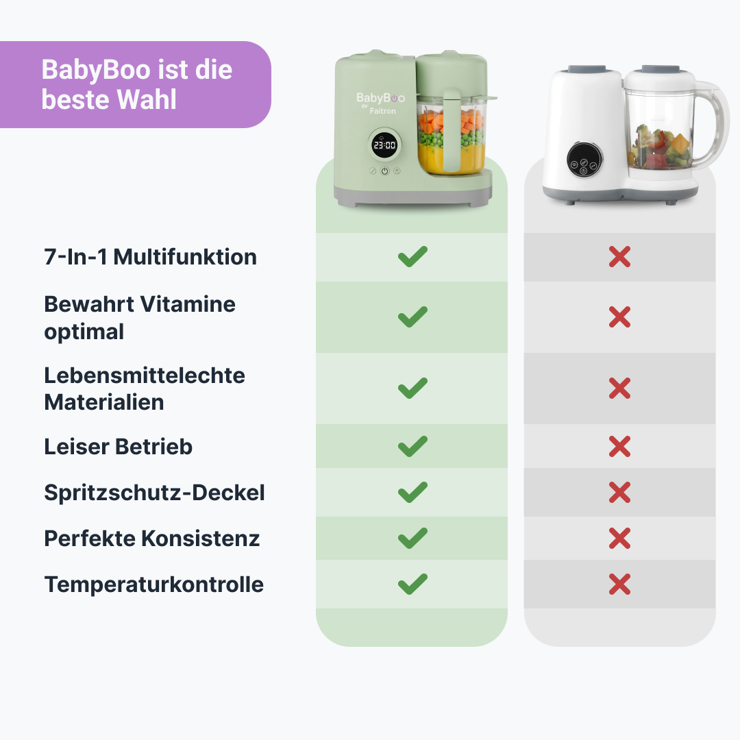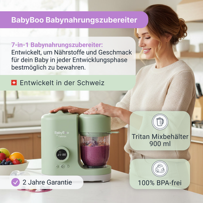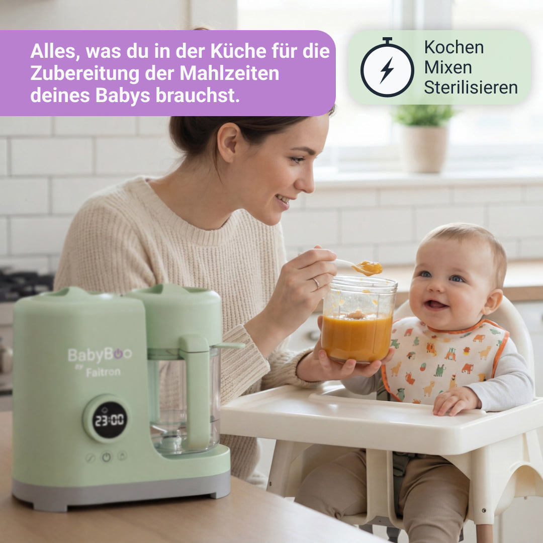 Durch umfassende Forschung, Tests und Entwicklung bietet BabyBoo eine der fortschrittlichsten und bequemsten Möglichkeiten, dein Baby zu füttern, entwickelt, um Vitamine und Nährstoffe bestmöglich zu erhalten, von Milch über die ersten Mahlzeiten bis weit darüber hinaus.