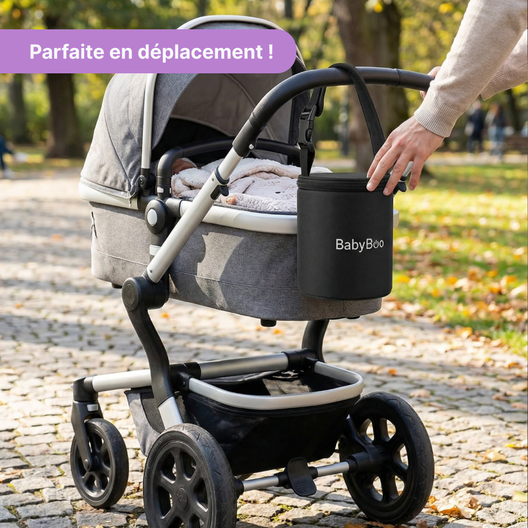 Se fixe facilement à la poussette pour un transport mains libres, te permettant de voyager léger tout en restant prêt à nourrir bébé dès que la faim se fait sentir.