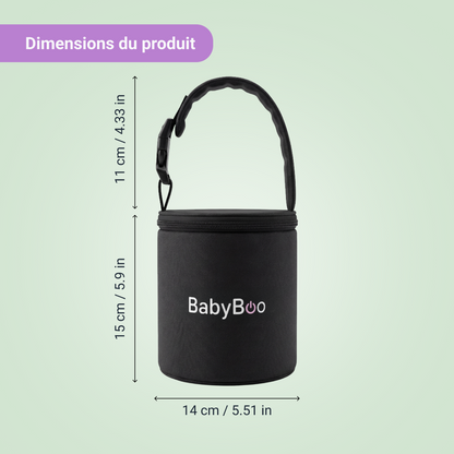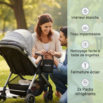 Il s’attache solidement à la poussette et permet de ranger le BabyBoo chauffe nourriture portable ou les récipients intérieurs pour un accès rapide et facile en déplacement.