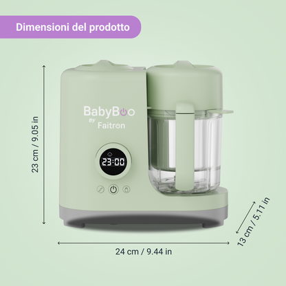 Invece di utilizzare più dispositivi, BabyBoo Cuocipappa combina tutte le funzioni essenziali in un unico robot da cucina dalle dimensioni perfette e dotato di tecnologia avanzata, indispensabile per mamme e papà.
