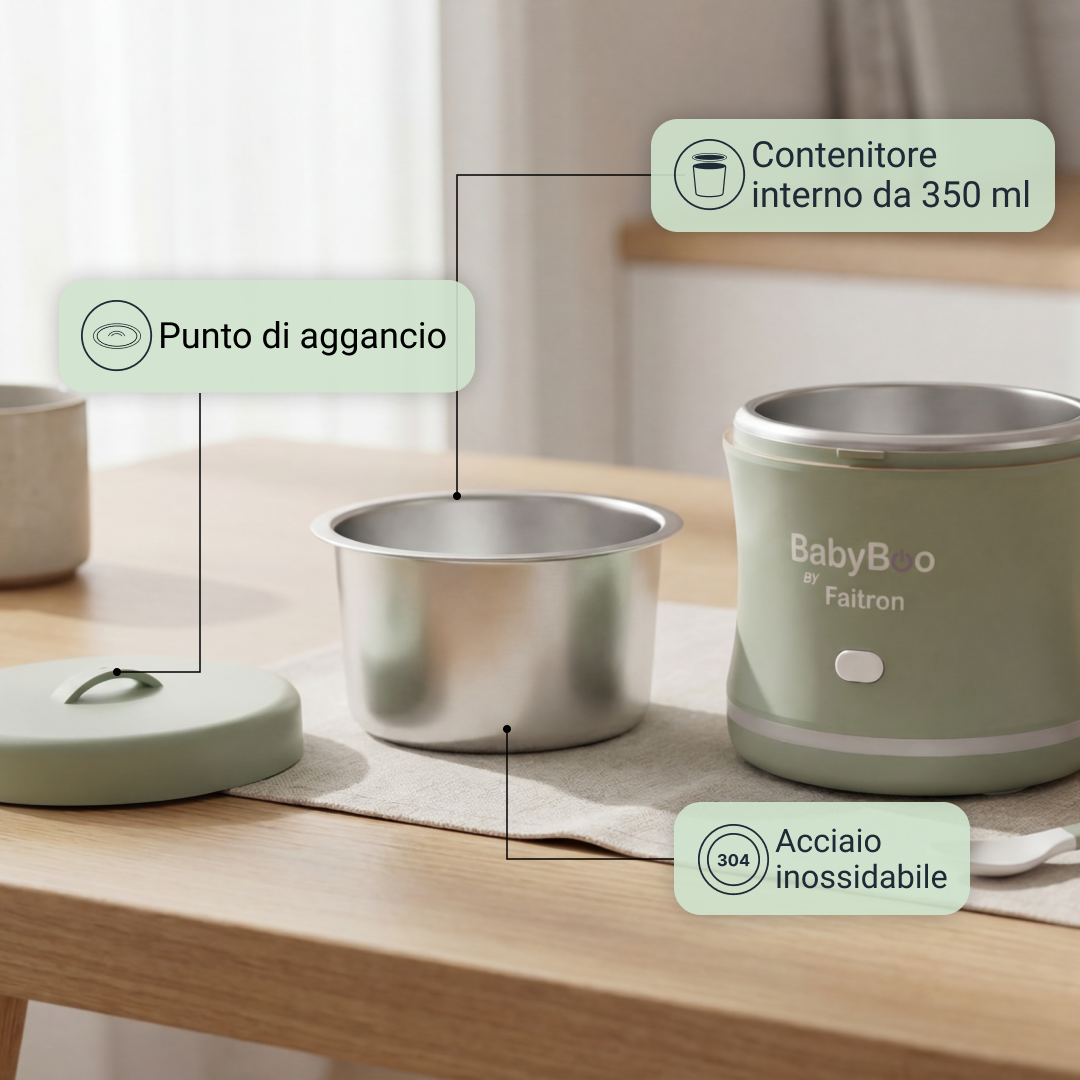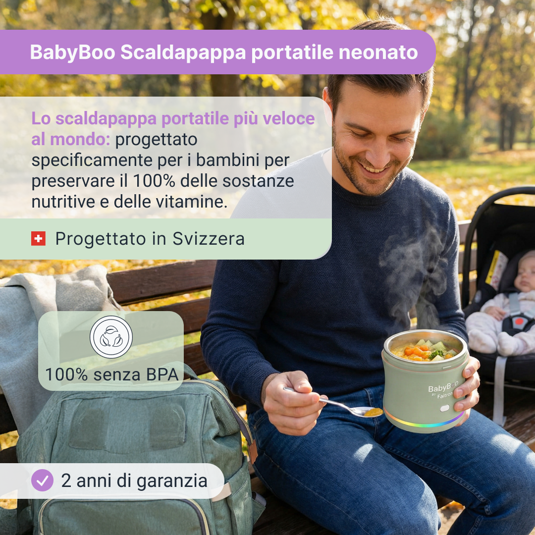Quell'esperienza mi ha ispirato a creare BabyBoo. Basato sugli stessi principi che hanno reso HeatsBox un successo, BabyBoo si concentra su tecnologia avanzata, innovazione brevettata e design accurato per supportare un'alimentazione sana fin dalle prime fasi. Come marchio svizzero, poniamo grande enfasi sulla qualità, la precisione e il miglioramento continuo, creando prodotti di cui i genitori possono fidarsi ogni giorno.