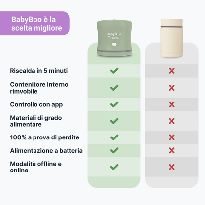 Grazie a ricerche, test e sviluppi approfonditi, BabyBoo offre uno dei modi più avanzati e convenienti per nutrire il tuo bambino, progettato per aiutare a preservare vitamine e sostanze nutritive, dal latte ai primi pasti e oltre.