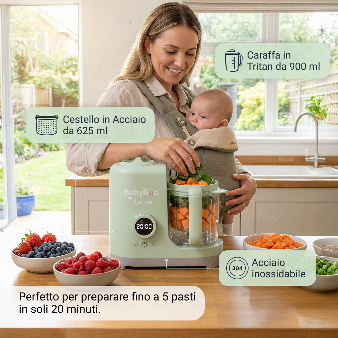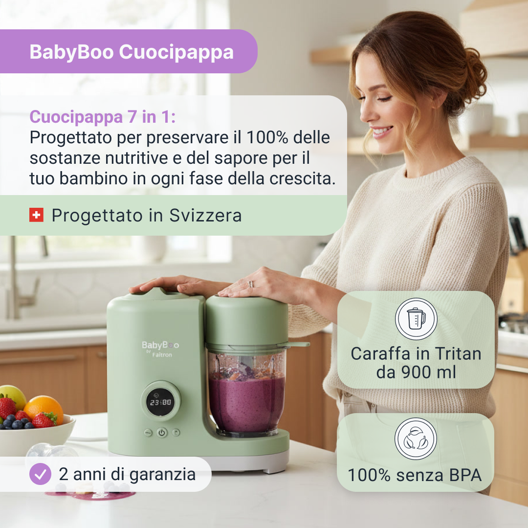 Grazie a ricerche, test e sviluppi approfonditi, BabyBoo offre uno dei modi più avanzati e convenienti per nutrire il tuo bambino, progettato per aiutare a preservare vitamine e sostanze nutritive, dal latte ai primi pasti e oltre.